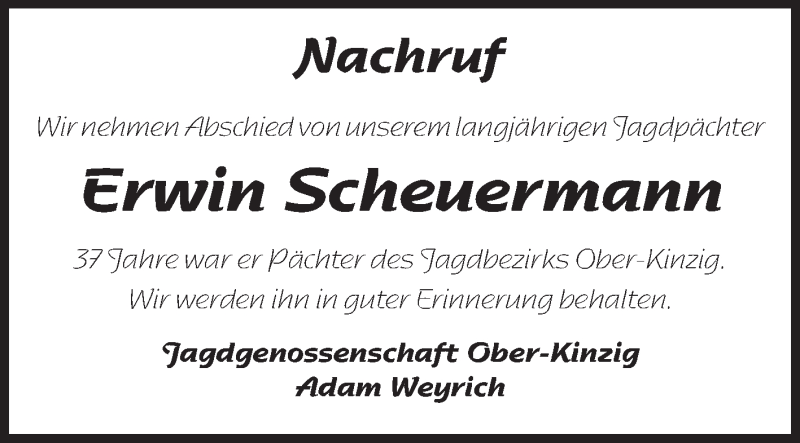 Hier finden Sie alle Traueranzeigen aus der Zeitung, die bisher für Erwin Scheuermann erschienen sind. Weitere Traueranzeigen, die in der Zeitung erscheinen, werden hier ebenfalls aufgelistet