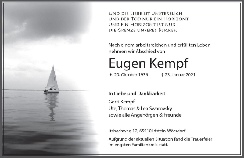 Hier finden Sie alle Traueranzeigen aus der Zeitung, die bisher für Eugen Kempf erschienen sind. Weitere Traueranzeigen, die in der Zeitung erscheinen, werden hier ebenfalls aufgelistet