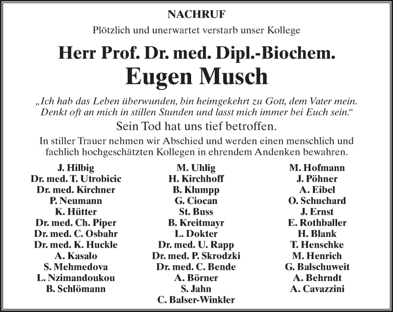 Hier finden Sie alle Traueranzeigen aus der Zeitung, die bisher für Eugen Musch erschienen sind. Weitere Traueranzeigen, die in der Zeitung erscheinen, werden hier ebenfalls aufgelistet