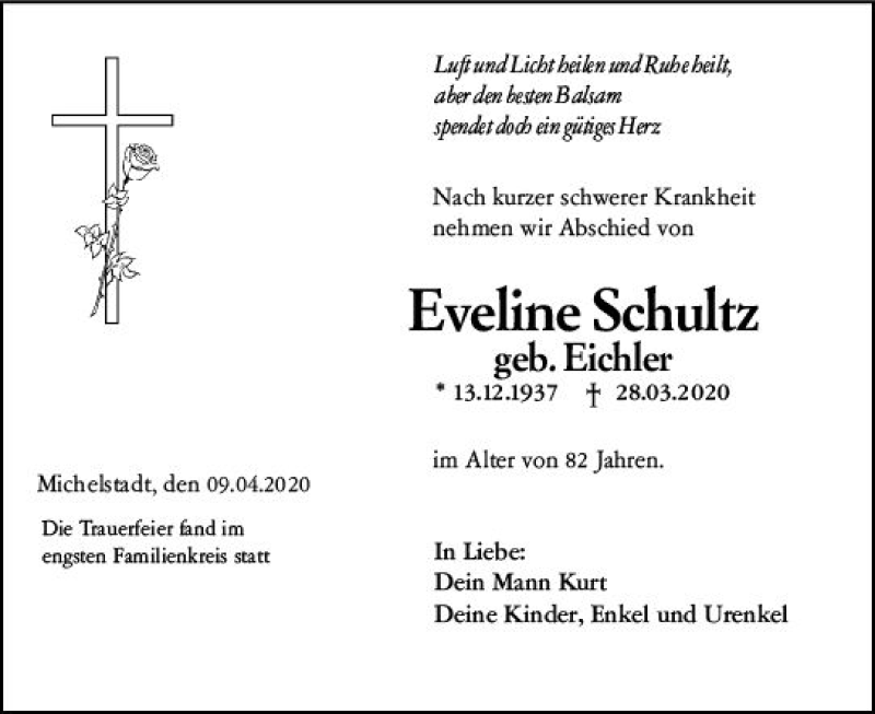 Hier finden Sie alle Traueranzeigen aus der Zeitung, die bisher für Eveline Schultz erschienen sind. Weitere Traueranzeigen, die in der Zeitung erscheinen, werden hier ebenfalls aufgelistet