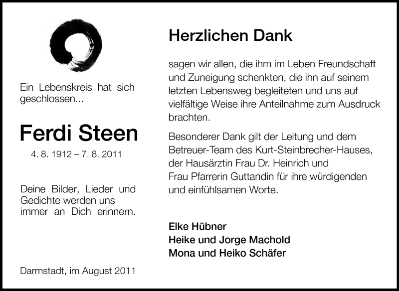 Hier finden Sie alle Traueranzeigen aus der Zeitung, die bisher für Ferdi Steen erschienen sind. Weitere Traueranzeigen, die in der Zeitung erscheinen, werden hier ebenfalls aufgelistet
