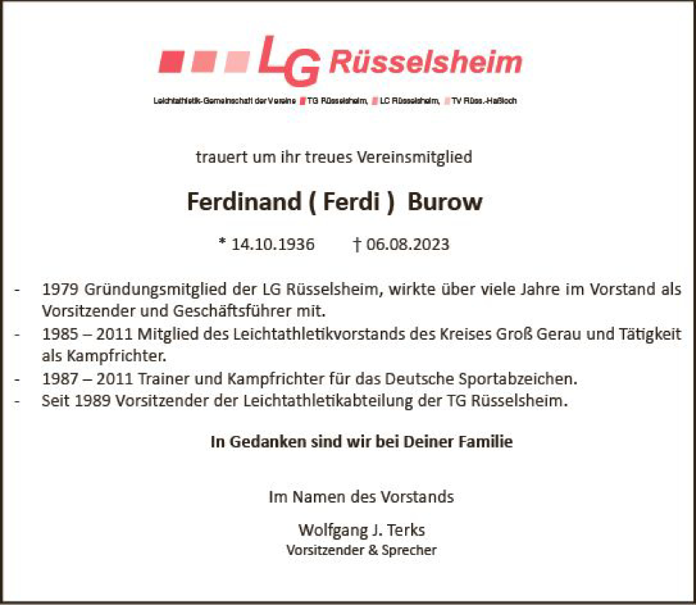 Hier finden Sie alle Traueranzeigen aus der Zeitung, die bisher für Ferdinand Burow erschienen sind. Weitere Traueranzeigen, die in der Zeitung erscheinen, werden hier ebenfalls aufgelistet
