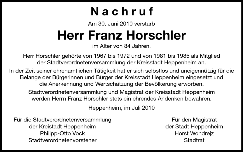 Hier finden Sie alle Traueranzeigen aus der Zeitung, die bisher für Franz Horschler erschienen sind. Weitere Traueranzeigen, die in der Zeitung erscheinen, werden hier ebenfalls aufgelistet