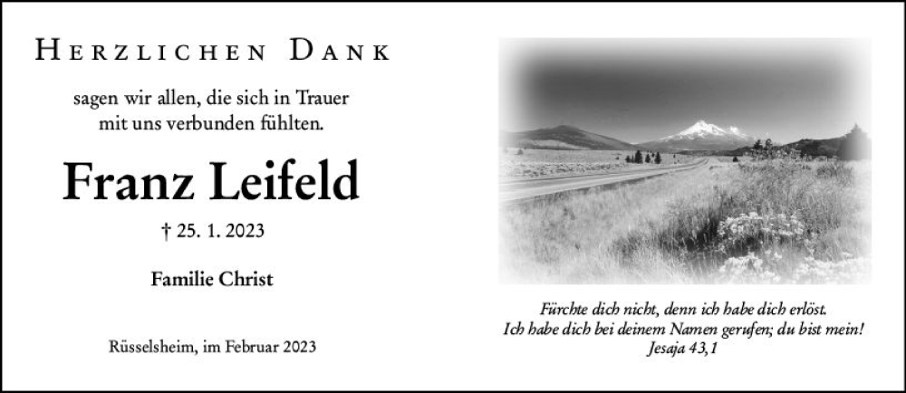 Hier finden Sie alle Traueranzeigen aus der Zeitung, die bisher für Franz Leifeld erschienen sind. Weitere Traueranzeigen, die in der Zeitung erscheinen, werden hier ebenfalls aufgelistet