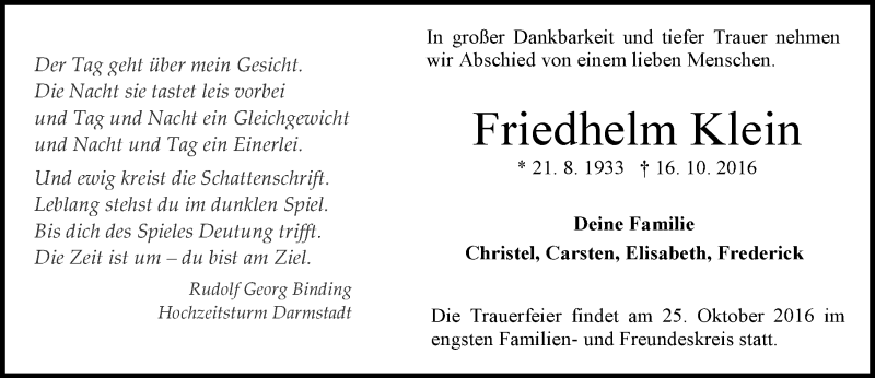 Hier finden Sie alle Traueranzeigen aus der Zeitung, die bisher für Friedhelm Klein erschienen sind. Weitere Traueranzeigen, die in der Zeitung erscheinen, werden hier ebenfalls aufgelistet