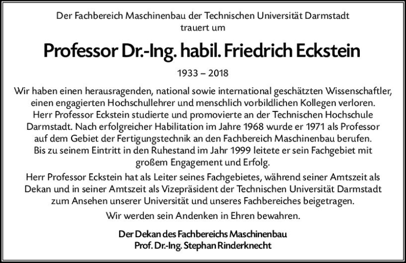 Hier finden Sie alle Traueranzeigen aus der Zeitung, die bisher für Friedrich Eckstein erschienen sind. Weitere Traueranzeigen, die in der Zeitung erscheinen, werden hier ebenfalls aufgelistet