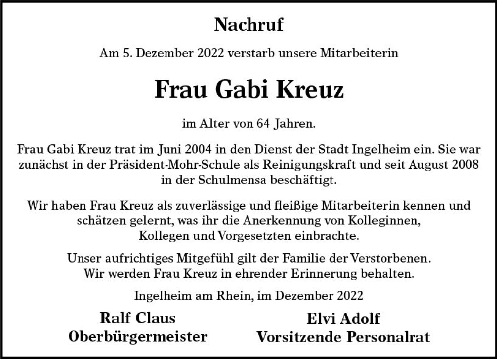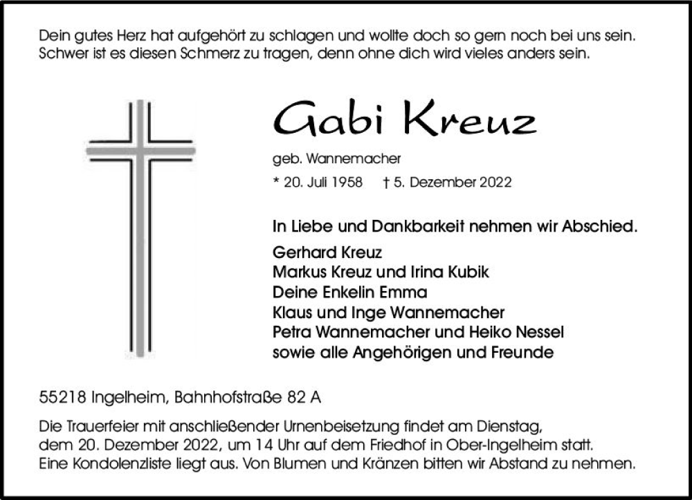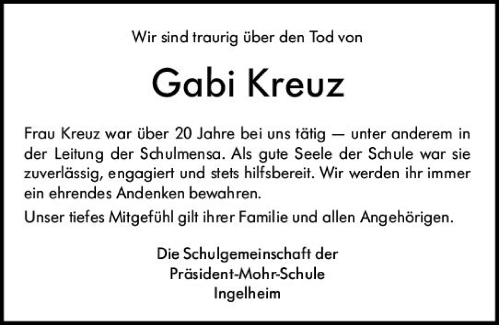 Hier finden Sie alle Traueranzeigen aus der Zeitung, die bisher für Gabi Kreuz erschienen sind. Weitere Traueranzeigen, die in der Zeitung erscheinen, werden hier ebenfalls aufgelistet