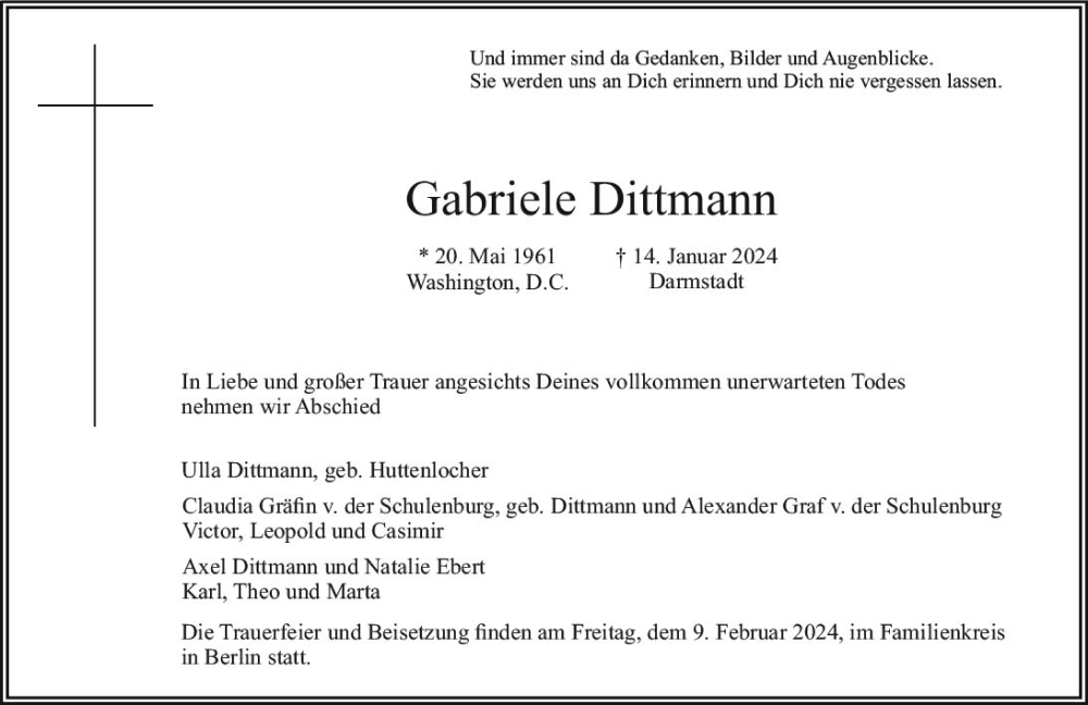 Hier finden Sie alle Traueranzeigen aus der Zeitung, die bisher für Gabriele Dittmann erschienen sind. Weitere Traueranzeigen, die in der Zeitung erscheinen, werden hier ebenfalls aufgelistet