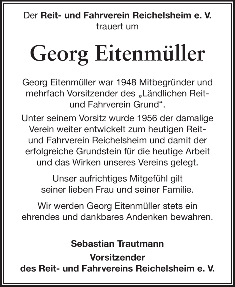 Hier finden Sie alle Traueranzeigen aus der Zeitung, die bisher für Georg Eitenmüller erschienen sind. Weitere Traueranzeigen, die in der Zeitung erscheinen, werden hier ebenfalls aufgelistet