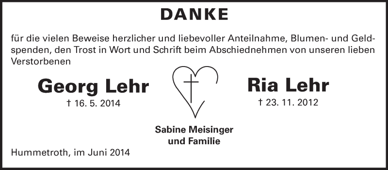 Hier finden Sie alle Traueranzeigen aus der Zeitung, die bisher für Georg Lehr erschienen sind. Weitere Traueranzeigen, die in der Zeitung erscheinen, werden hier ebenfalls aufgelistet