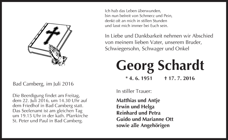 Hier finden Sie alle Traueranzeigen aus der Zeitung, die bisher für Georg Schardt erschienen sind. Weitere Traueranzeigen, die in der Zeitung erscheinen, werden hier ebenfalls aufgelistet