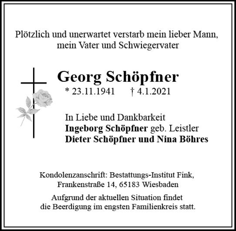 Hier finden Sie alle Traueranzeigen aus der Zeitung, die bisher für Georg Schöpfner erschienen sind. Weitere Traueranzeigen, die in der Zeitung erscheinen, werden hier ebenfalls aufgelistet