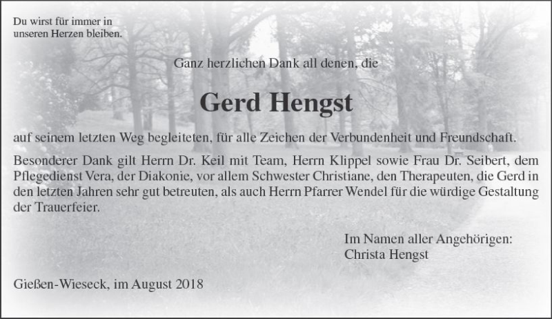 Hier finden Sie alle Traueranzeigen aus der Zeitung, die bisher für Gerd Hengst erschienen sind. Weitere Traueranzeigen, die in der Zeitung erscheinen, werden hier ebenfalls aufgelistet