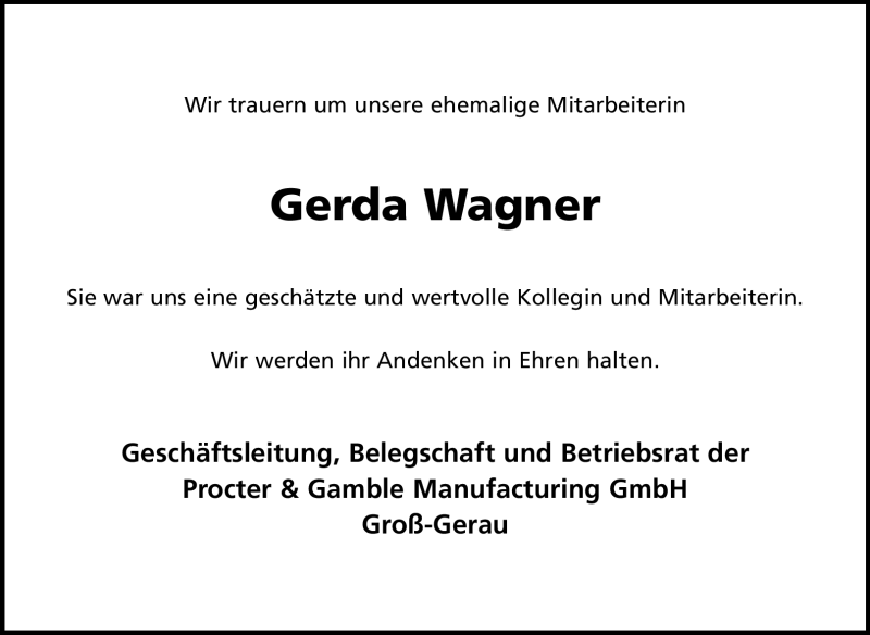 Hier finden Sie alle Traueranzeigen aus der Zeitung, die bisher für Gerda Wagner erschienen sind. Weitere Traueranzeigen, die in der Zeitung erscheinen, werden hier ebenfalls aufgelistet