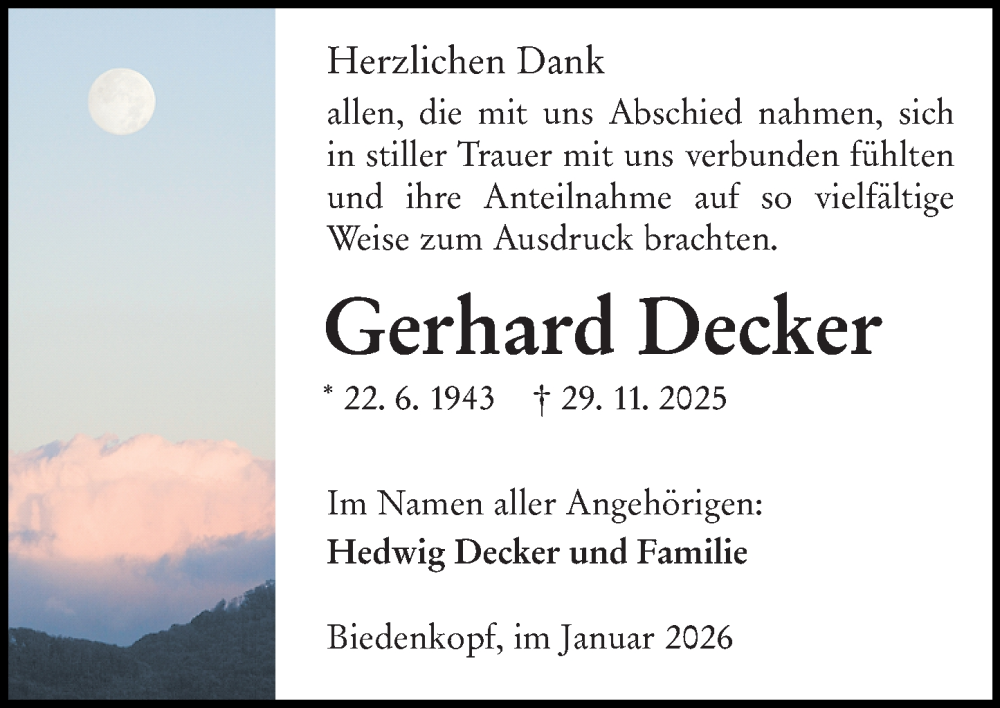 Hier finden Sie alle Traueranzeigen aus der Zeitung, die bisher für Gerhard Decker erschienen sind. Weitere Traueranzeigen, die in der Zeitung erscheinen, werden hier ebenfalls aufgelistet
