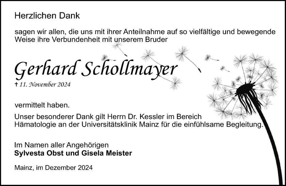 Hier finden Sie alle Traueranzeigen aus der Zeitung, die bisher für Gerhard Schollmayer erschienen sind. Weitere Traueranzeigen, die in der Zeitung erscheinen, werden hier ebenfalls aufgelistet