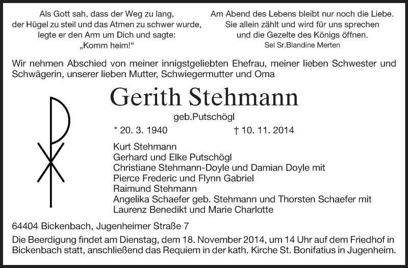 Hier finden Sie alle Traueranzeigen aus der Zeitung, die bisher für Gerith Stehmann erschienen sind. Weitere Traueranzeigen, die in der Zeitung erscheinen, werden hier ebenfalls aufgelistet