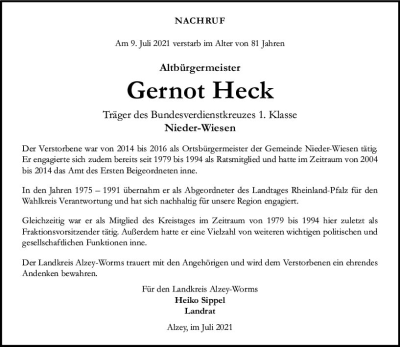 Hier finden Sie alle Traueranzeigen aus der Zeitung, die bisher für Gernot Heck erschienen sind. Weitere Traueranzeigen, die in der Zeitung erscheinen, werden hier ebenfalls aufgelistet