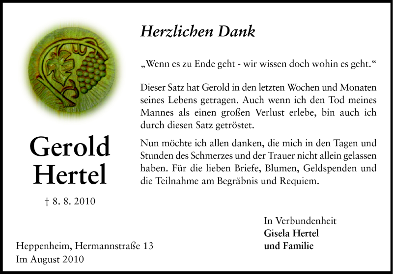 Hier finden Sie alle Traueranzeigen aus der Zeitung, die bisher für Gerold Hertel erschienen sind. Weitere Traueranzeigen, die in der Zeitung erscheinen, werden hier ebenfalls aufgelistet