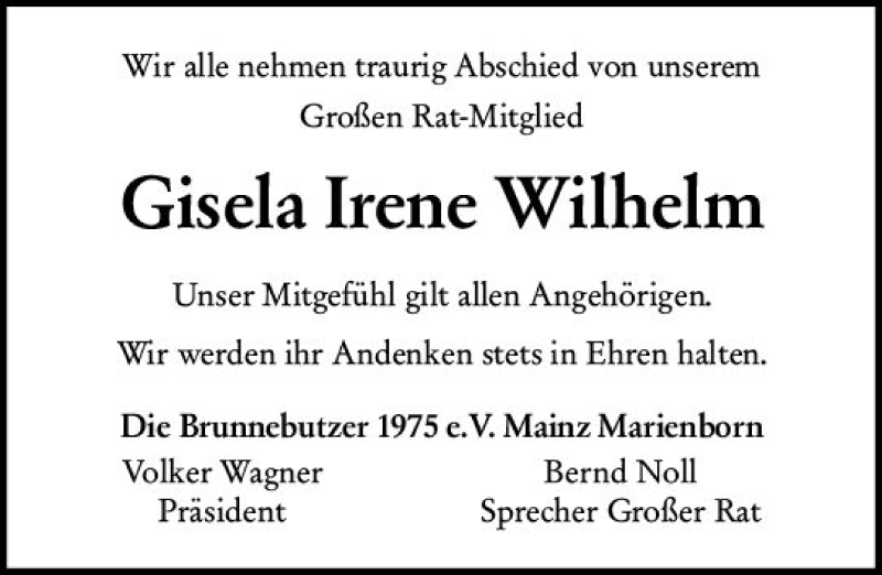 Hier finden Sie alle Traueranzeigen aus der Zeitung, die bisher für Gisela Irene Wilhelm erschienen sind. Weitere Traueranzeigen, die in der Zeitung erscheinen, werden hier ebenfalls aufgelistet