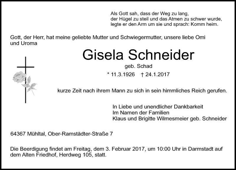 Hier finden Sie alle Traueranzeigen aus der Zeitung, die bisher für Gisela Schneider erschienen sind. Weitere Traueranzeigen, die in der Zeitung erscheinen, werden hier ebenfalls aufgelistet