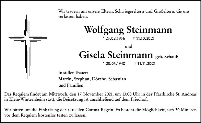 Hier finden Sie alle Traueranzeigen aus der Zeitung, die bisher für Gisela Steinmann erschienen sind. Weitere Traueranzeigen, die in der Zeitung erscheinen, werden hier ebenfalls aufgelistet