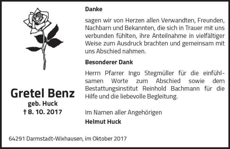 Hier finden Sie alle Traueranzeigen aus der Zeitung, die bisher für Gretel Benz erschienen sind. Weitere Traueranzeigen, die in der Zeitung erscheinen, werden hier ebenfalls aufgelistet