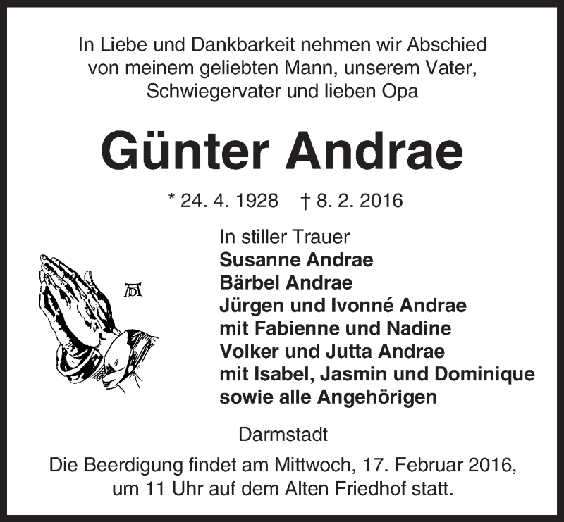 Hier finden Sie alle Traueranzeigen aus der Zeitung, die bisher für Günter Andrae erschienen sind. Weitere Traueranzeigen, die in der Zeitung erscheinen, werden hier ebenfalls aufgelistet