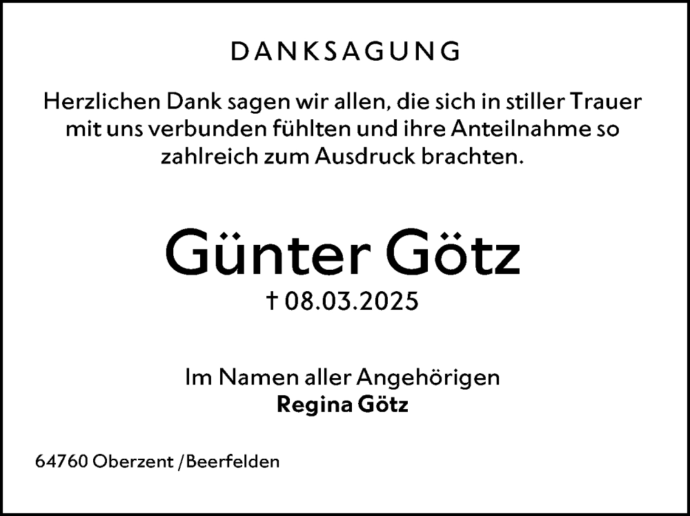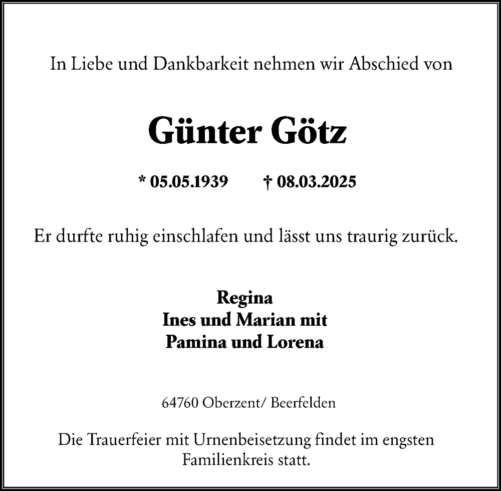 Hier finden Sie alle Traueranzeigen aus der Zeitung, die bisher für Günter Götz erschienen sind. Weitere Traueranzeigen, die in der Zeitung erscheinen, werden hier ebenfalls aufgelistet