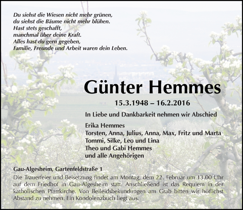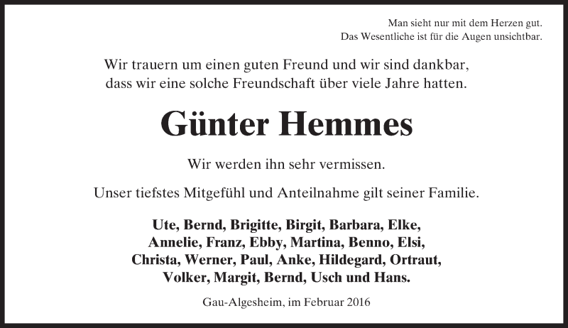 Hier finden Sie alle Traueranzeigen aus der Zeitung, die bisher für Günter Hemmes erschienen sind. Weitere Traueranzeigen, die in der Zeitung erscheinen, werden hier ebenfalls aufgelistet
