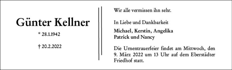 Hier finden Sie alle Traueranzeigen aus der Zeitung, die bisher für Günter Kellner erschienen sind. Weitere Traueranzeigen, die in der Zeitung erscheinen, werden hier ebenfalls aufgelistet