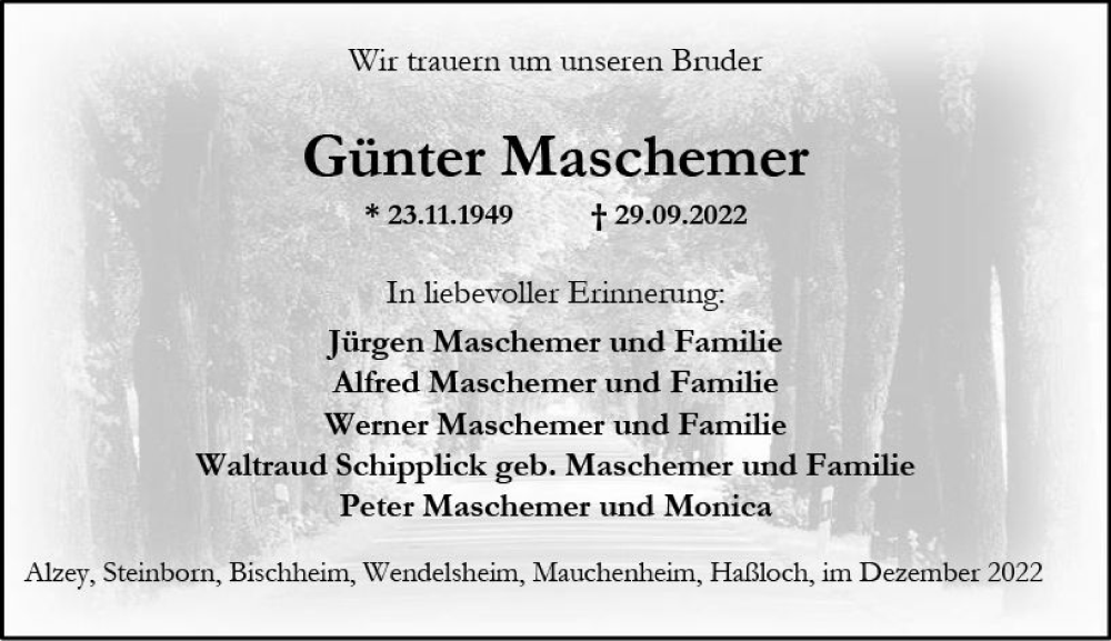 Hier finden Sie alle Traueranzeigen aus der Zeitung, die bisher für Günter Maschemer erschienen sind. Weitere Traueranzeigen, die in der Zeitung erscheinen, werden hier ebenfalls aufgelistet