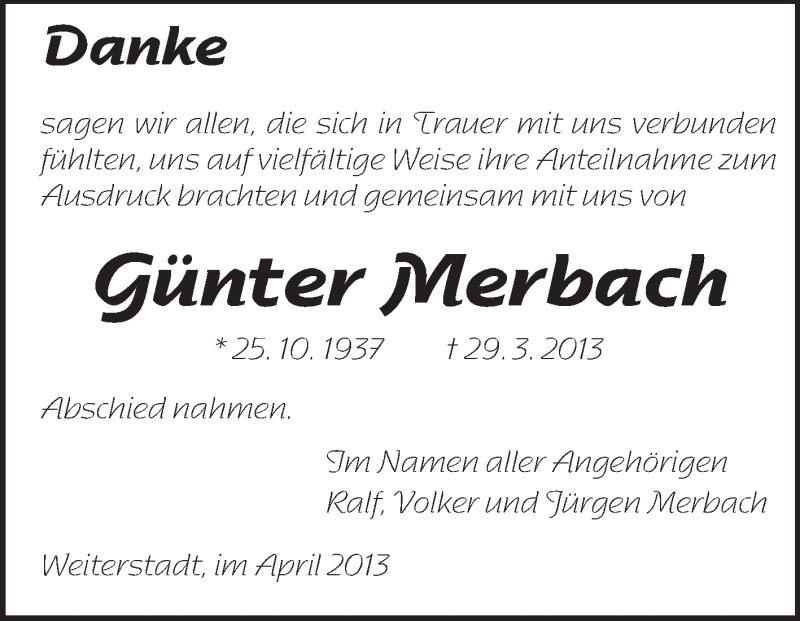Hier finden Sie alle Traueranzeigen aus der Zeitung, die bisher für Günter Merbach erschienen sind. Weitere Traueranzeigen, die in der Zeitung erscheinen, werden hier ebenfalls aufgelistet