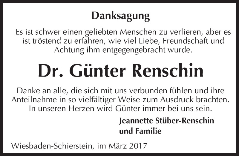 Hier finden Sie alle Traueranzeigen aus der Zeitung, die bisher für Günter Renschin erschienen sind. Weitere Traueranzeigen, die in der Zeitung erscheinen, werden hier ebenfalls aufgelistet