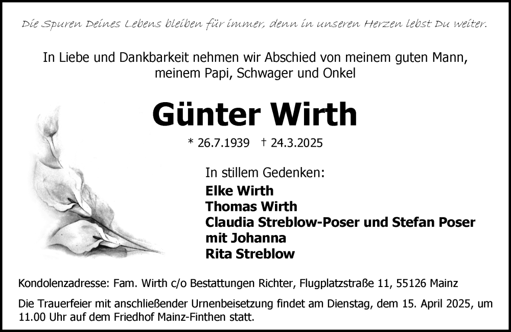 Hier finden Sie alle Traueranzeigen aus der Zeitung, die bisher für Günter Wirth erschienen sind. Weitere Traueranzeigen, die in der Zeitung erscheinen, werden hier ebenfalls aufgelistet