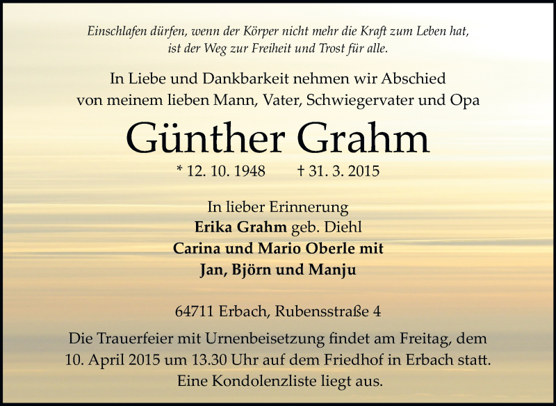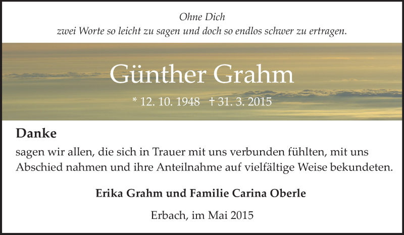 Hier finden Sie alle Traueranzeigen aus der Zeitung, die bisher für Günther Grahm erschienen sind. Weitere Traueranzeigen, die in der Zeitung erscheinen, werden hier ebenfalls aufgelistet