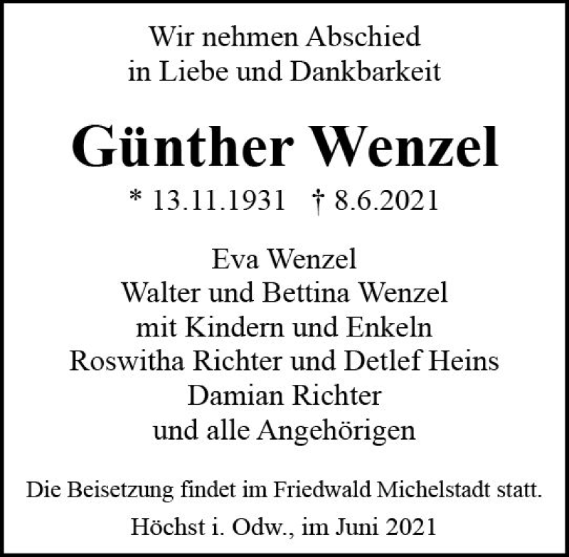 Hier finden Sie alle Traueranzeigen aus der Zeitung, die bisher für Günther Wenzel erschienen sind. Weitere Traueranzeigen, die in der Zeitung erscheinen, werden hier ebenfalls aufgelistet