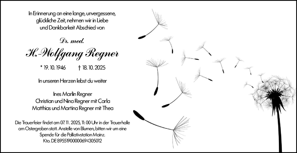 Hier finden Sie alle Traueranzeigen aus der Zeitung, die bisher für H.-Wolfgang Regner erschienen sind. Weitere Traueranzeigen, die in der Zeitung erscheinen, werden hier ebenfalls aufgelistet