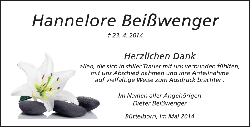 Hier finden Sie alle Traueranzeigen aus der Zeitung, die bisher für Hannelore Beißwenger erschienen sind. Weitere Traueranzeigen, die in der Zeitung erscheinen, werden hier ebenfalls aufgelistet