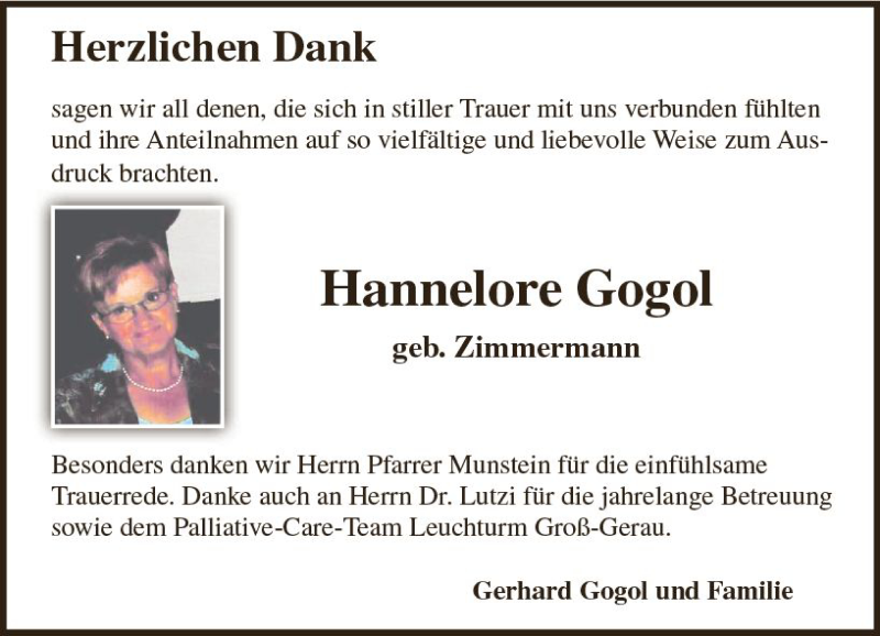 Hier finden Sie alle Traueranzeigen aus der Zeitung, die bisher für Hannelore Gogol erschienen sind. Weitere Traueranzeigen, die in der Zeitung erscheinen, werden hier ebenfalls aufgelistet