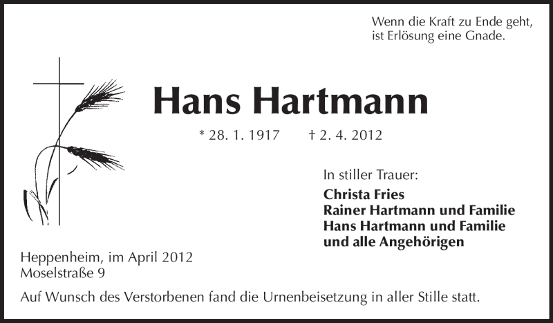 Hier finden Sie alle Traueranzeigen aus der Zeitung, die bisher für Hans Hartmann erschienen sind. Weitere Traueranzeigen, die in der Zeitung erscheinen, werden hier ebenfalls aufgelistet