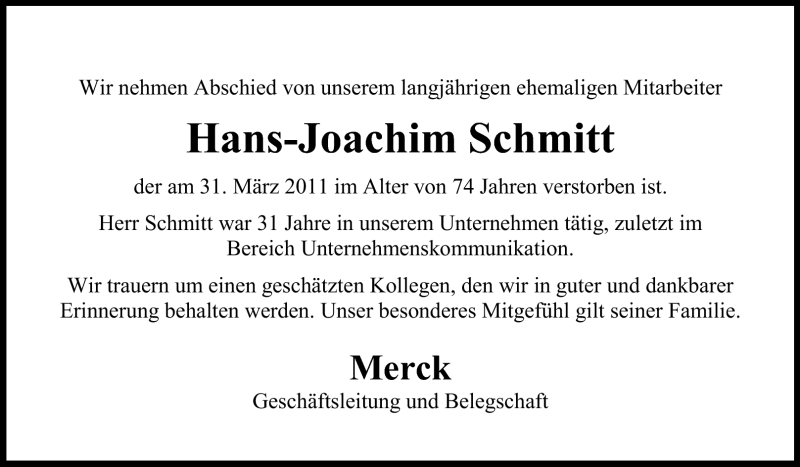Hier finden Sie alle Traueranzeigen aus der Zeitung, die bisher für Hans-Joachim Schmitt erschienen sind. Weitere Traueranzeigen, die in der Zeitung erscheinen, werden hier ebenfalls aufgelistet