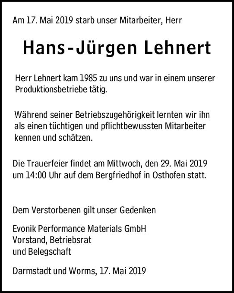 Hier finden Sie alle Traueranzeigen aus der Zeitung, die bisher für Hans-Jürgen Lehnert erschienen sind. Weitere Traueranzeigen, die in der Zeitung erscheinen, werden hier ebenfalls aufgelistet