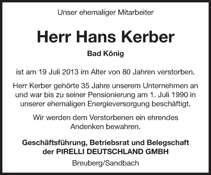 Hier finden Sie alle Traueranzeigen aus der Zeitung, die bisher für Hans Kerber erschienen sind. Weitere Traueranzeigen, die in der Zeitung erscheinen, werden hier ebenfalls aufgelistet