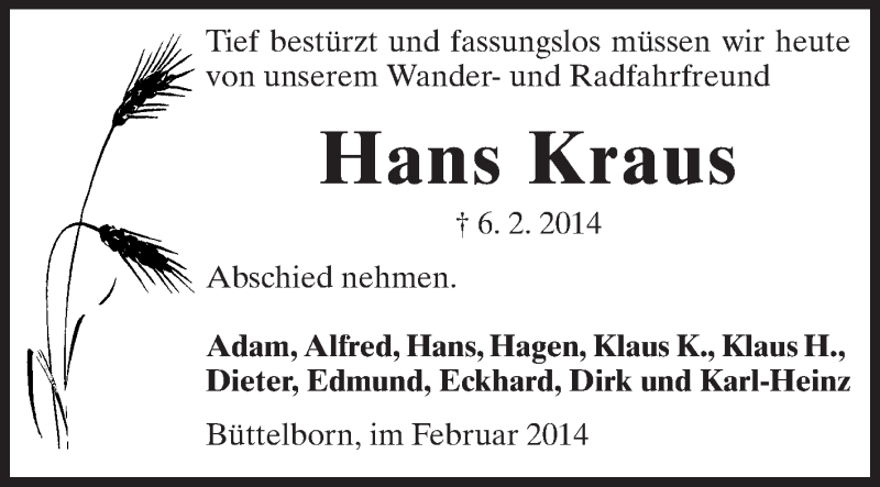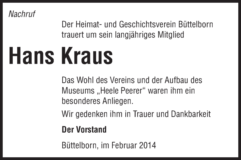 Hier finden Sie alle Traueranzeigen aus der Zeitung, die bisher für Hans Kraus erschienen sind. Weitere Traueranzeigen, die in der Zeitung erscheinen, werden hier ebenfalls aufgelistet