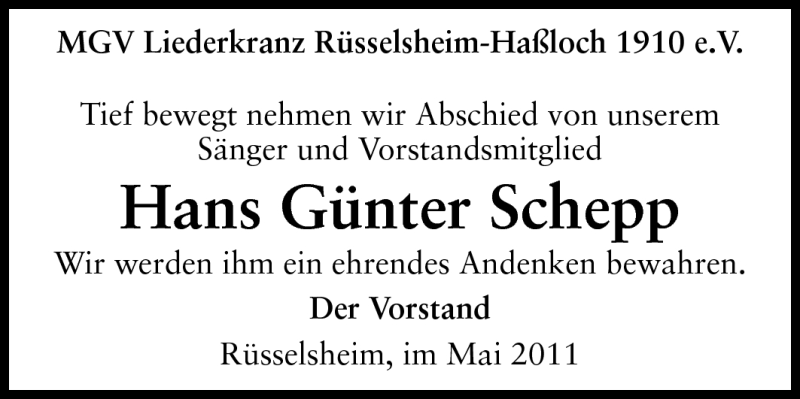 Hier finden Sie alle Traueranzeigen aus der Zeitung, die bisher für Hans Günter Schepp erschienen sind. Weitere Traueranzeigen, die in der Zeitung erscheinen, werden hier ebenfalls aufgelistet