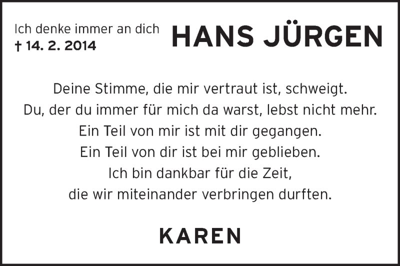 Hier finden Sie alle Traueranzeigen aus der Zeitung, die bisher für Hans Jürgen Tontsch erschienen sind. Weitere Traueranzeigen, die in der Zeitung erscheinen, werden hier ebenfalls aufgelistet