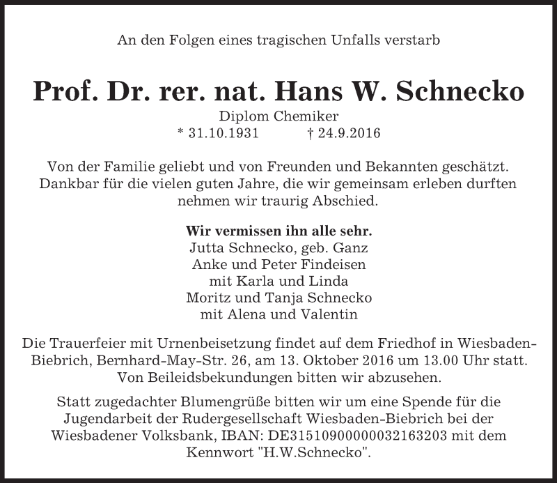 Hier finden Sie alle Traueranzeigen aus der Zeitung, die bisher für Hans W. Schnecko erschienen sind. Weitere Traueranzeigen, die in der Zeitung erscheinen, werden hier ebenfalls aufgelistet