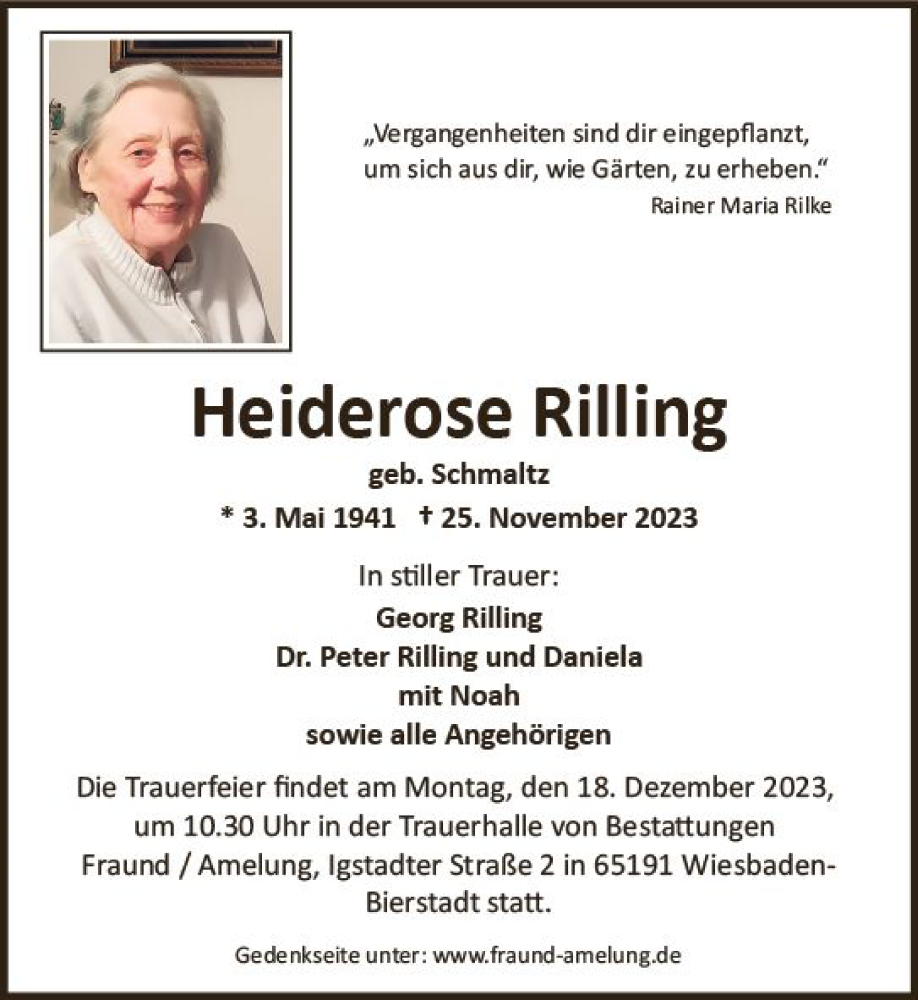 Hier finden Sie alle Traueranzeigen aus der Zeitung, die bisher für Heiderose Rilling erschienen sind. Weitere Traueranzeigen, die in der Zeitung erscheinen, werden hier ebenfalls aufgelistet