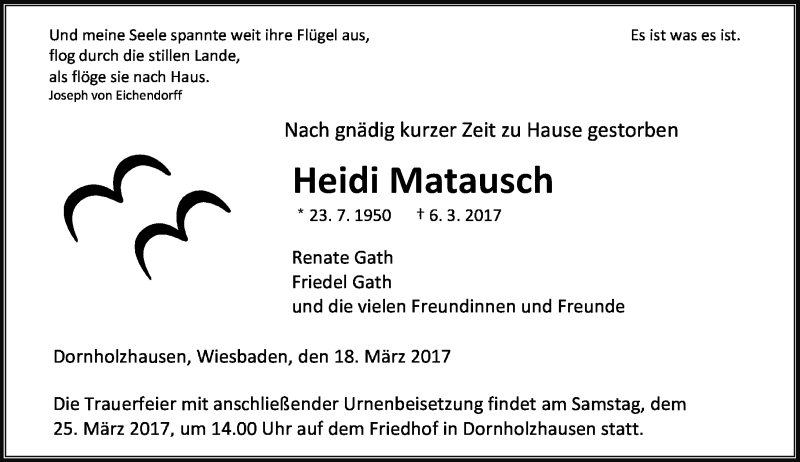 Hier finden Sie alle Traueranzeigen aus der Zeitung, die bisher für Heidi Matausch erschienen sind. Weitere Traueranzeigen, die in der Zeitung erscheinen, werden hier ebenfalls aufgelistet